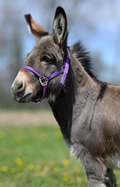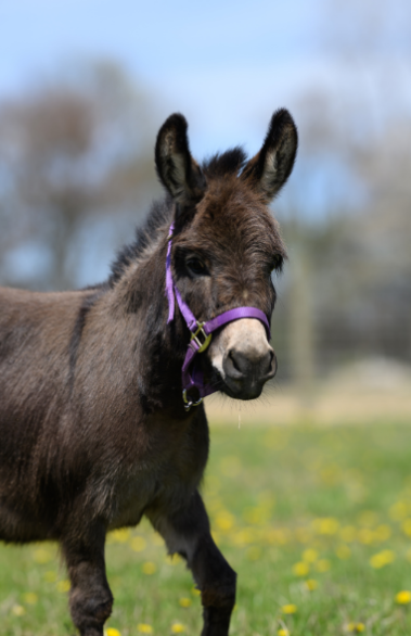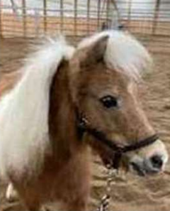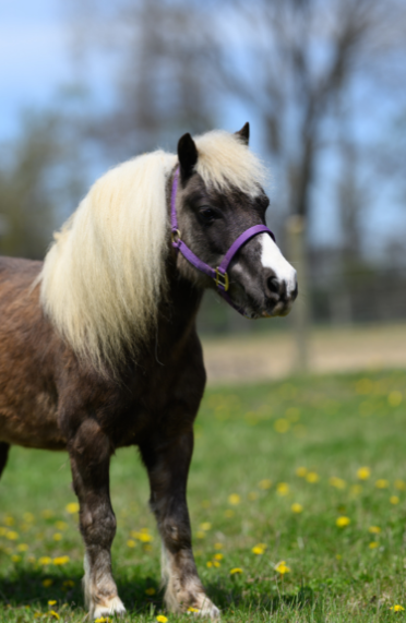 Is known as "Miss Independence", this 12-year-old mini teaches "Say what you mean, mean what you say, but don't say it mean." Then she'll give you cooperation and sometimes love. She came thanks to the Wyandot Humane Society and sometime pulles a cart around.