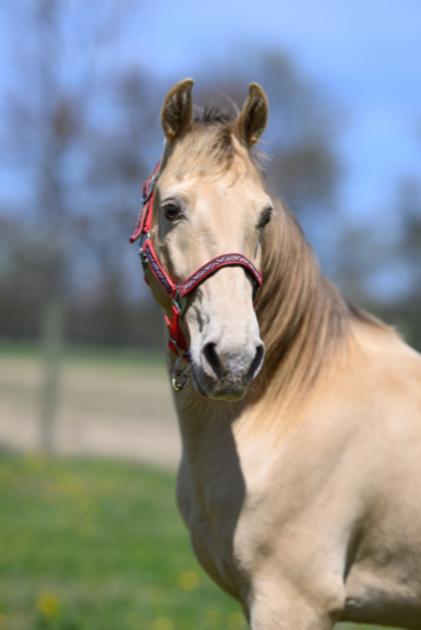 Tango is a four-year-old gelding and very playful. He pulls Tango around by her halter and will pick up his empty feed dish for you. He also loves to "cuddle" kids.